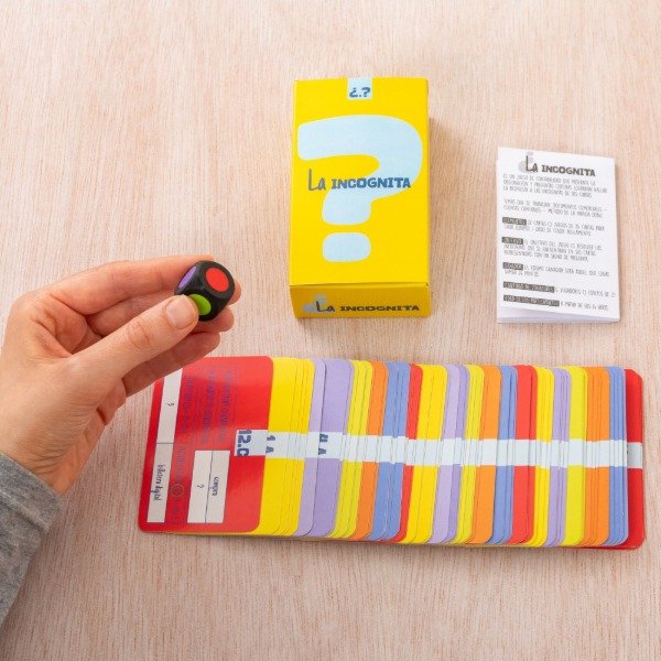 OBJETIVO: El objetivo del juego es resolver las incógnitas que se encuentran en sus cartas representadas con un signo de pregunta.